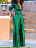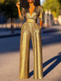 Women’s Jumpsuit – Deep V-Neck – Wide-Leg – Tie Waist