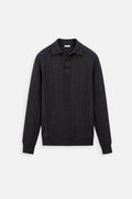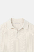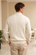 Men’s Knit Sweater – Cable Texture – Polo Collar – Soft Yarn
